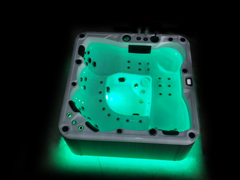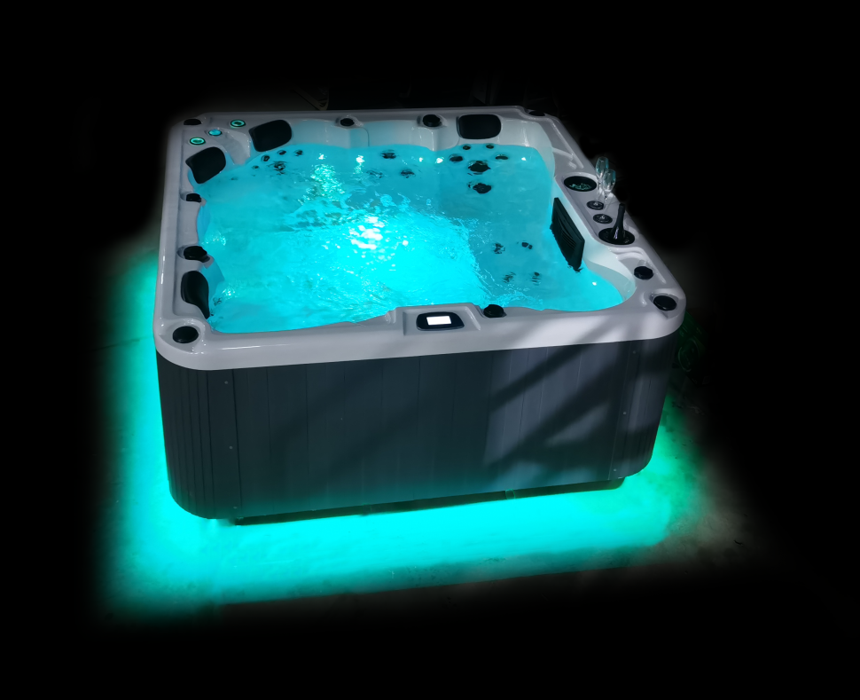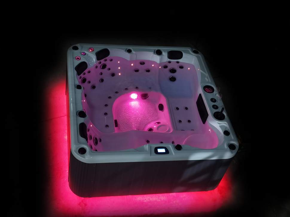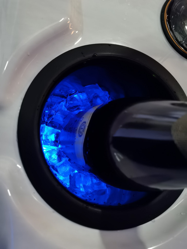 - Освещение: подводный светильник LED, светодиодная подсветка по периметру чаши, два фонтанчика с LED подсветкой, а также два встроенных ведерка для льда с LED подсветкой