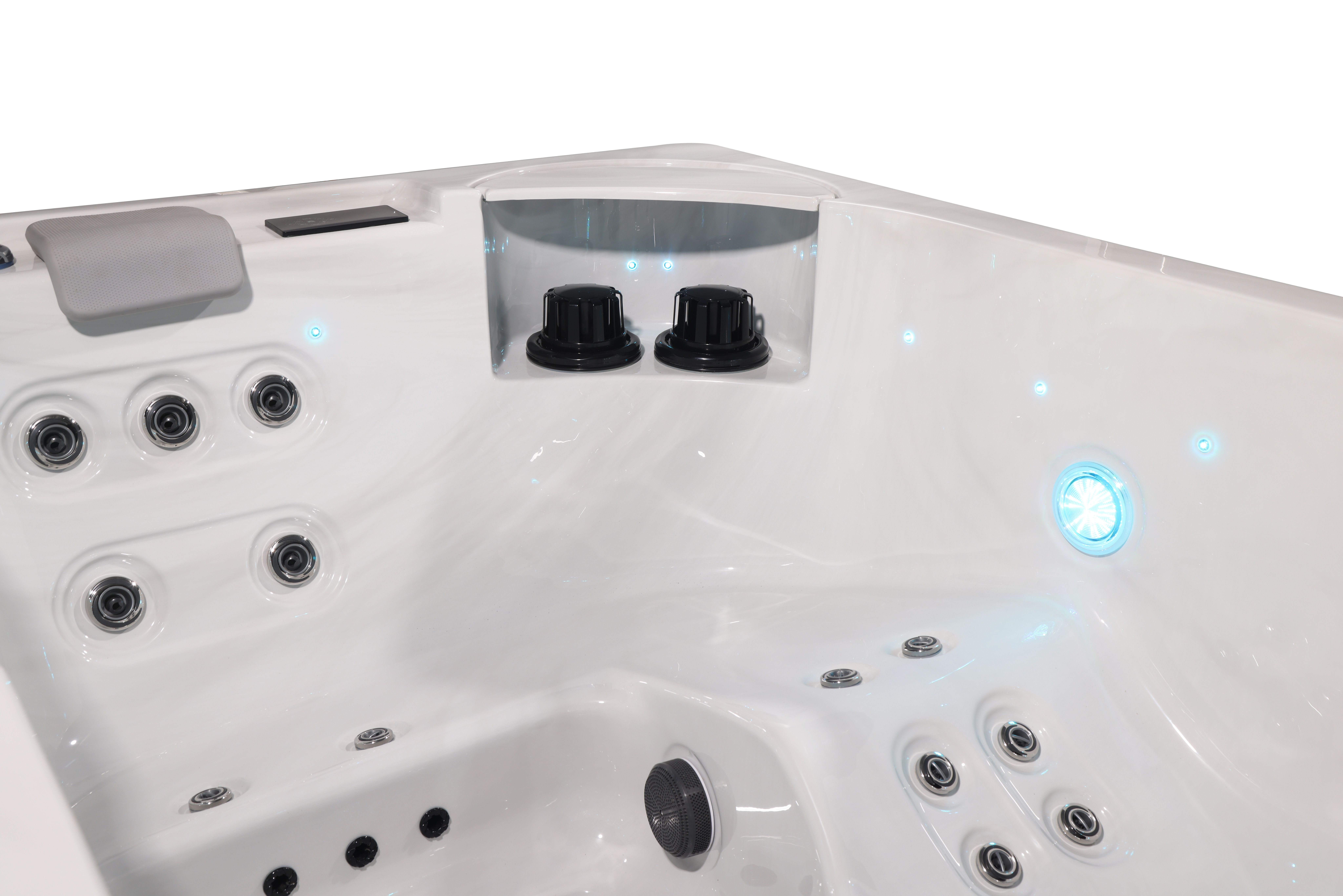 Хорошо продуманная система освещения превращает вечерний отдых в эстетическое наслаждение. Многоцветная подводная подсветка Northern Lights, дополненная изящной подсветкой ватерлинии, создает сложную игру света на воде, способствующую глубокой релаксации и визуальной гармонии.