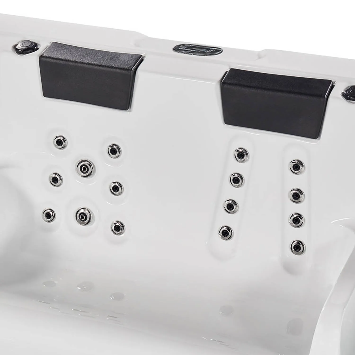 - 23 массажных форсунок с регулировкой направления потока, 2 удобных подголовника и глубина 1430 мм для полного расслабления;